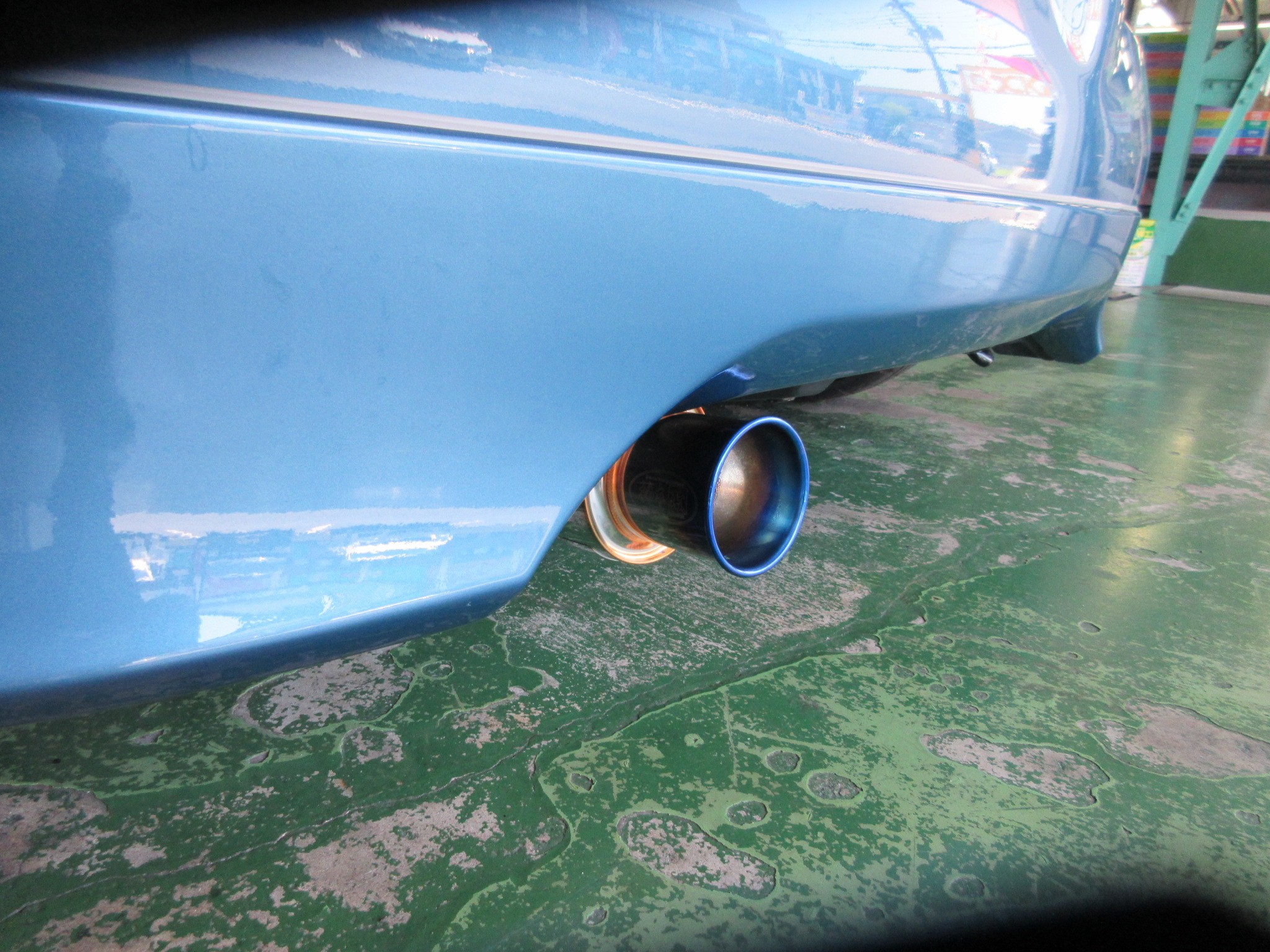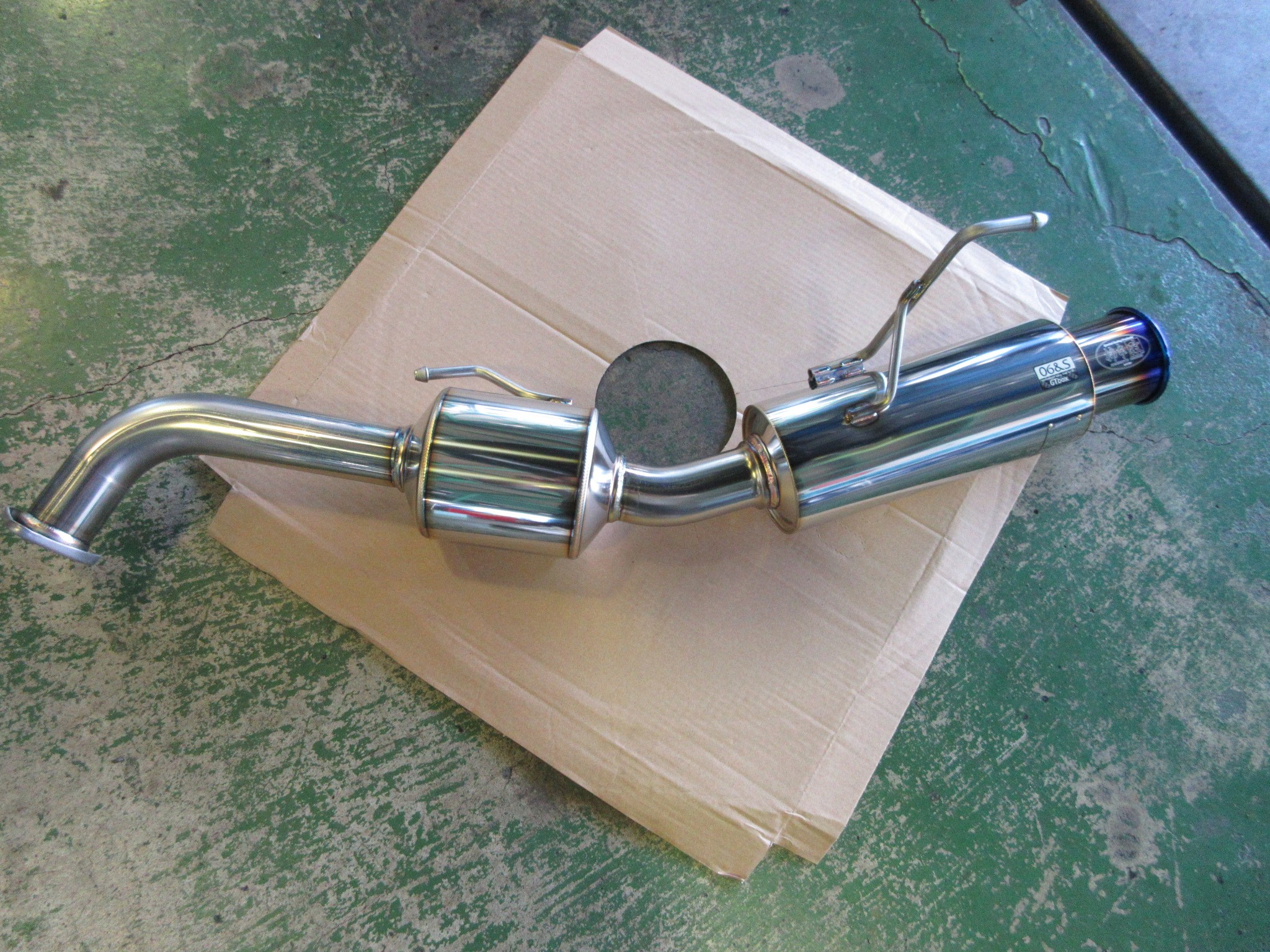 チタンカールテールには柿本改オリジナルの特殊コーティング処理を施しており、GTbox 06&Sのテールは1mm以下の薄肉材使用という、よりくすみやすい条件下にある為、この処理は非常に有効となっている。