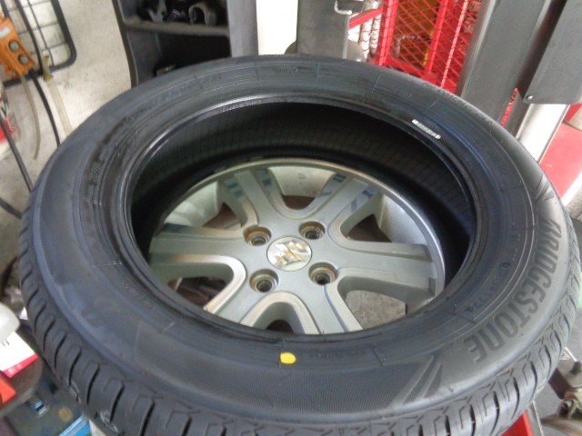 新品のタイヤを組み込んで、