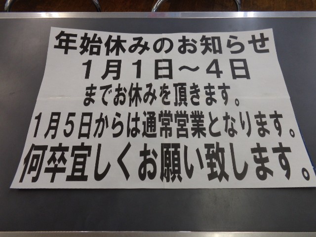 当店ですが1/1~1/4まで正月休暇となります。