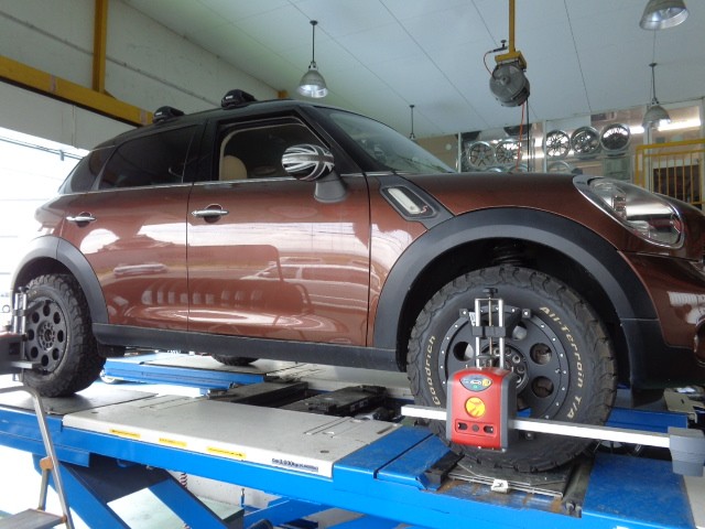こちらのお車は毎度おなじみですがリフトアップを行ったためにアライメントのご依頼です。