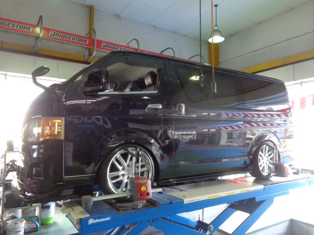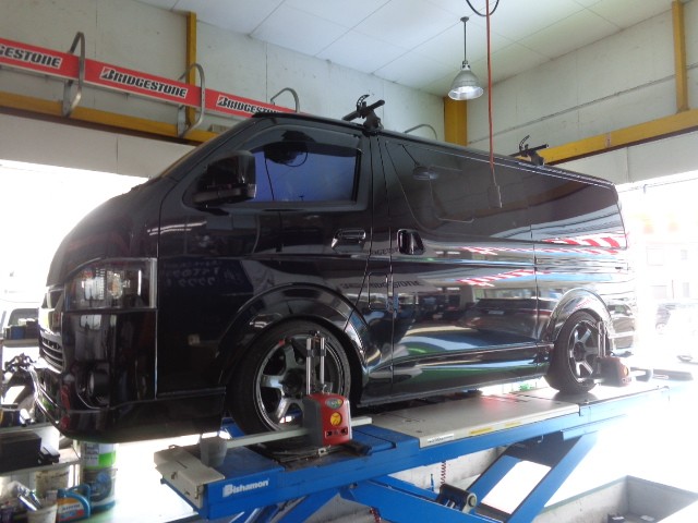 お次はタイヤ交換後のアライメント調整のハイエースです。