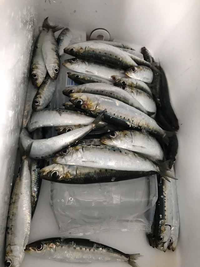 餌をまきだして10分もせずにイワシの群れが回ってきました(^^)/