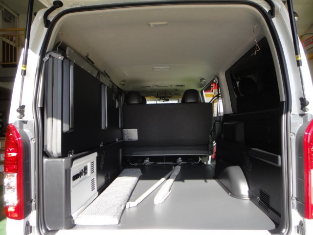 おまけにモデリスタ車の架装車でリアにベッドとキャンピング用の電源付で、 荷室にはベッドが標準装備の様に取付されていて、下はフローリング化になっています!