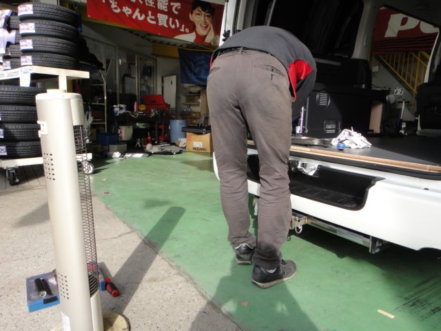 お乗換え前のハイエースよりリアテーブルとヒッチメンバーの取付も追加でーす(^^ゞ