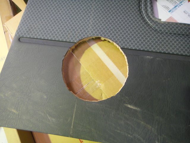 元々はダッシュについているので、ドアの内張りに穴をあけて埋め込み、