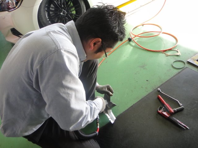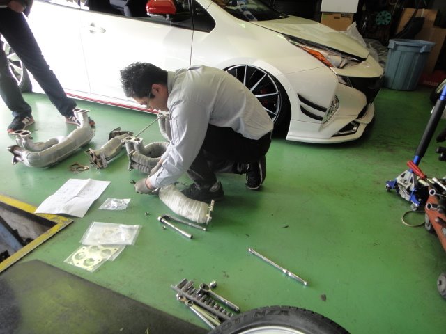 主任がフロントパイプ、私はエキマニを二人係で攻めちゃいます!