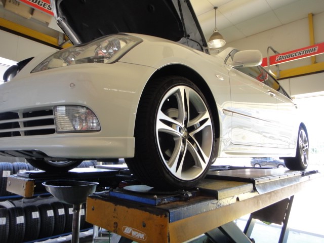 高速走行時にハンドルがぶれるとのことでバランス調整です。