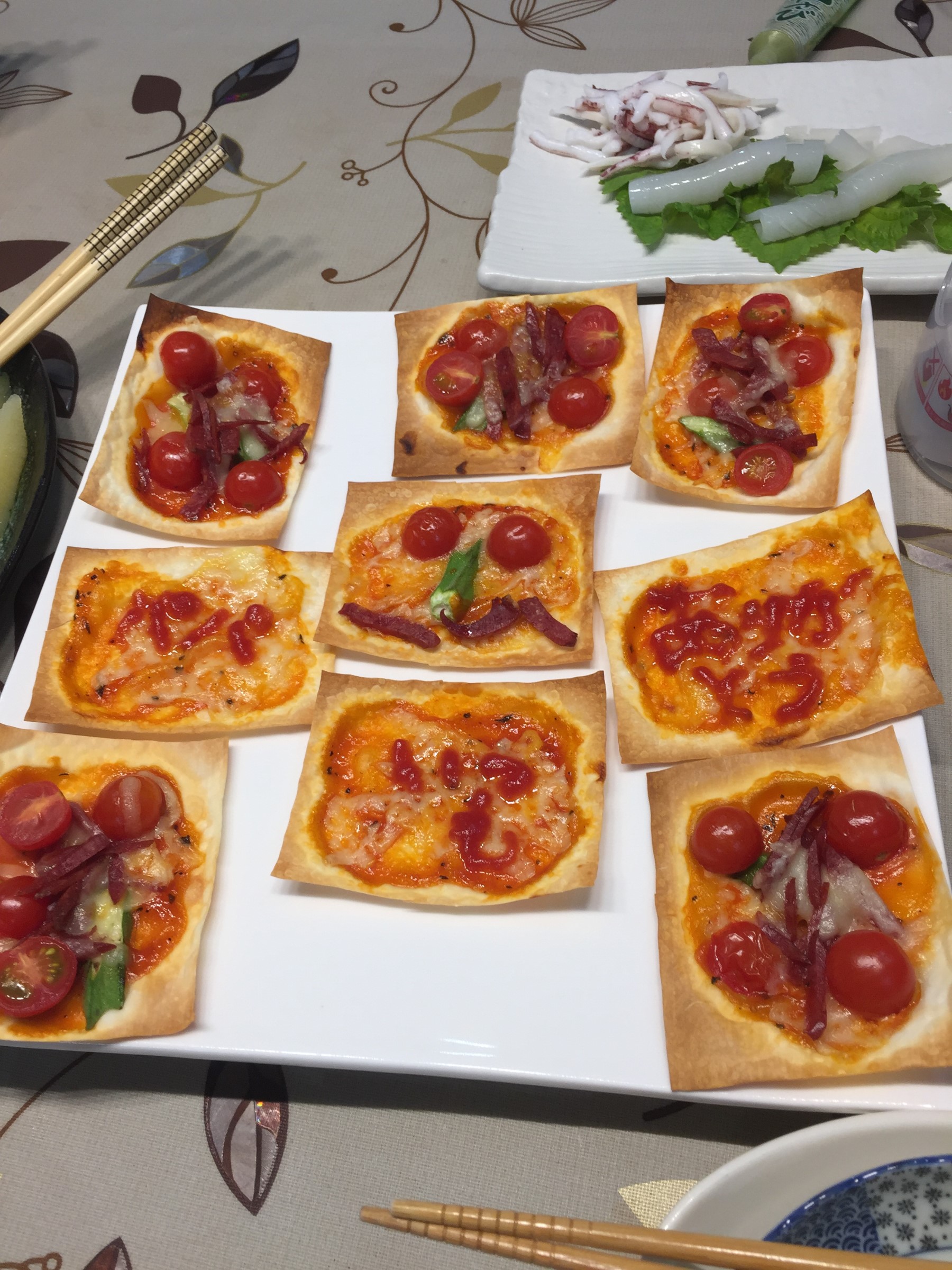 コメント付きの一口ピザをお昼から頑張って作ってくれたようです(^^ゞ