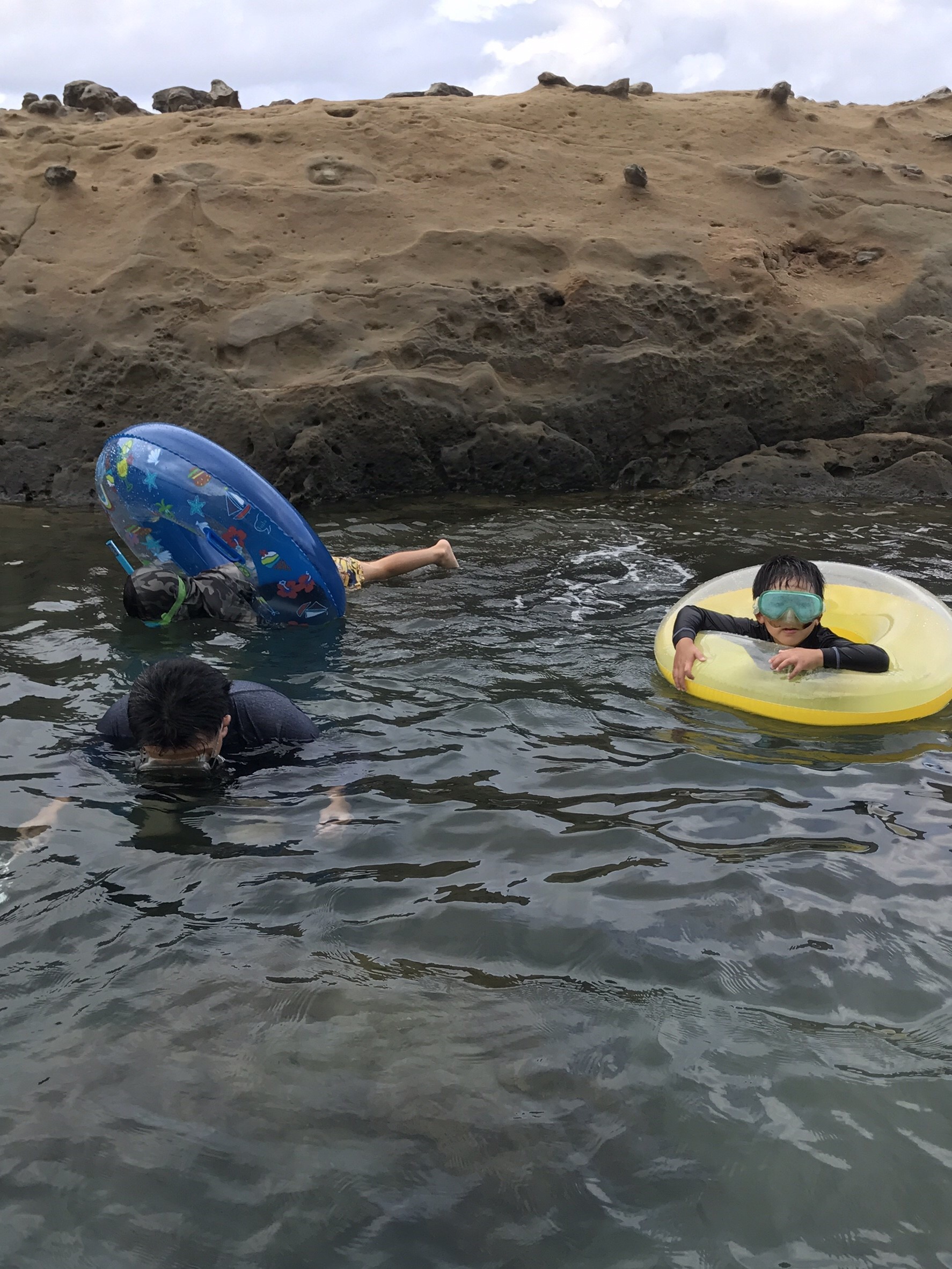 子供たちは危ないので波の無い岩陰で魚と格闘中~(^^)/