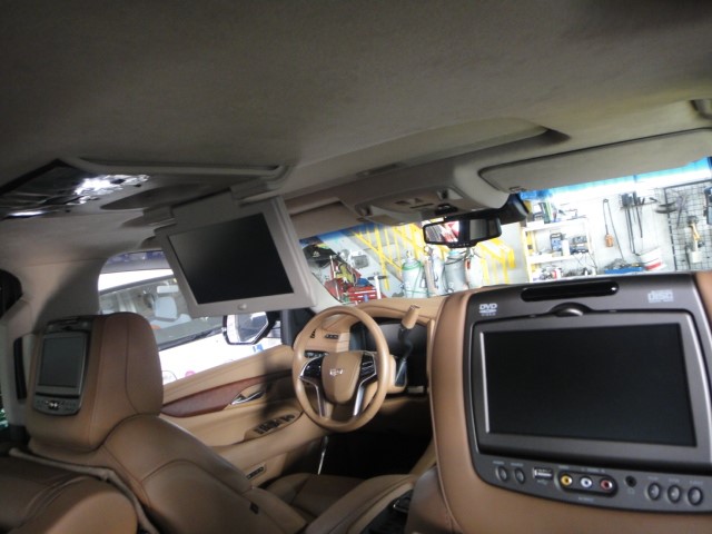 純正のヘッドレストにモニターと、天井にフリップダウンモニターが2個もついています!