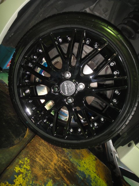 純正14インチアルミから16インチへの変貌です。