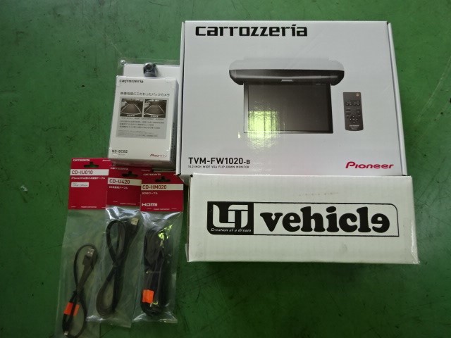 今回のメニューはナビ、バックカメラ、フリップダウンの取り付けです。