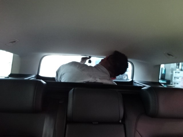 リアのラゲッジの中に入り込んで調整中?