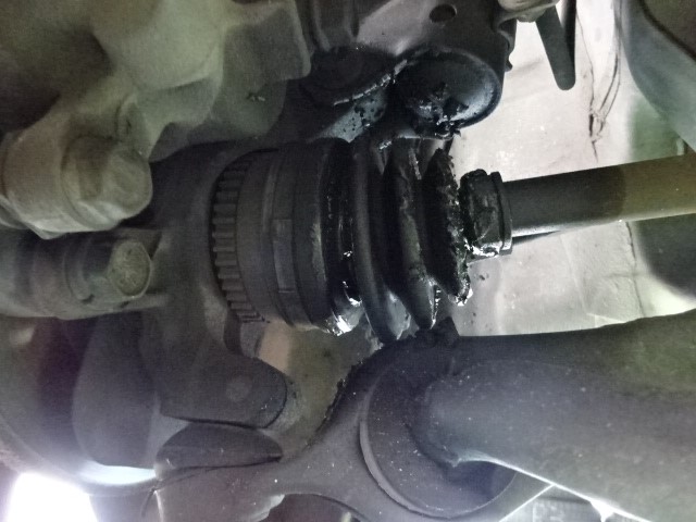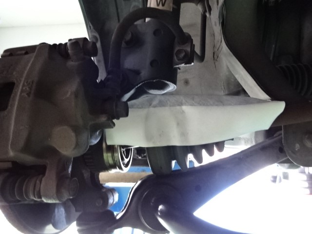 リフトを上げていくとドライブシャフトのブーツが完全に裂けて、