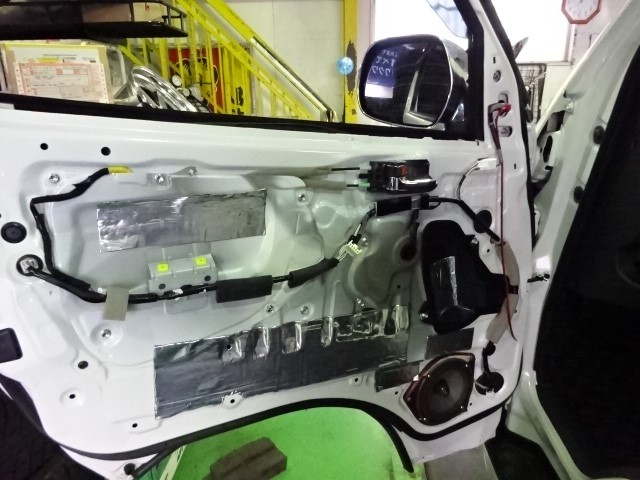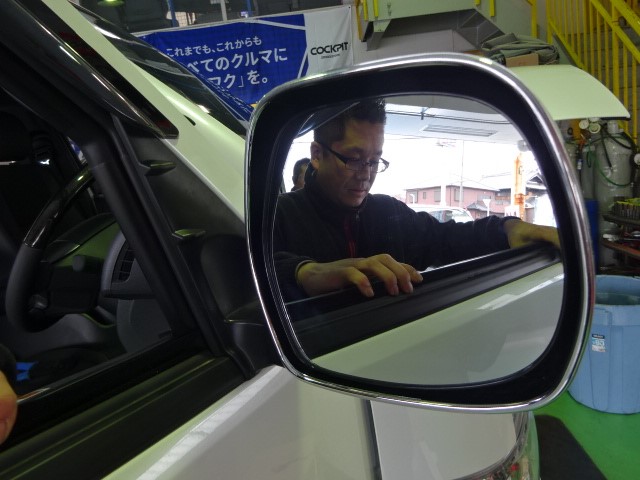 ミラーヒーターに取り付けた配線を車内まで引きこんでいきます(*^^)v