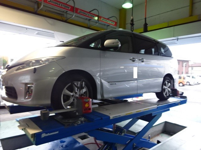 車が左に流れていくとのご指摘でアライメント測定です。