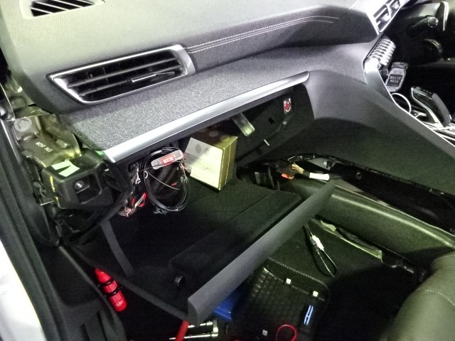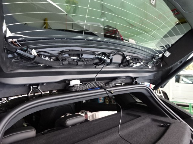 この配線を車内に引き込んで、助手席まで引き回していきます。