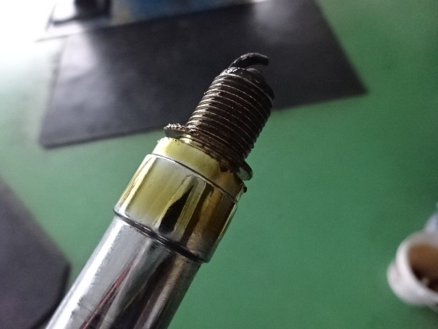 エンジンオイルでプラグが浸っていました!