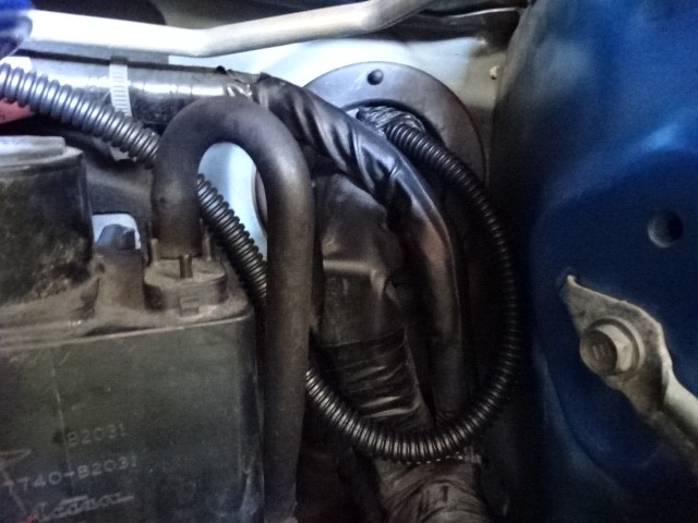 これで助手席側のワイヤーハーネスが通っている部分から通せます。