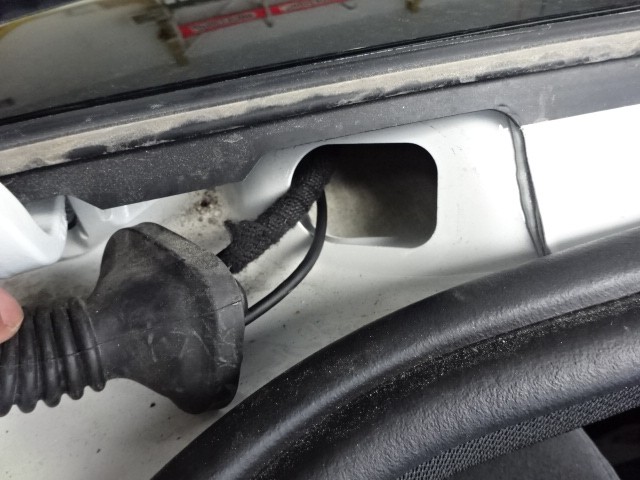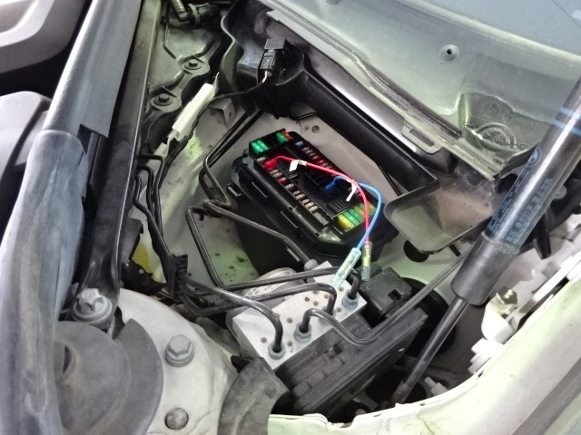 電源線をエンジンルームから車内に通してきまして、
