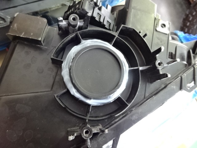 純正のHIDバラストが不要になりましたので、元々装着されていた部分をコーキング(^^♪