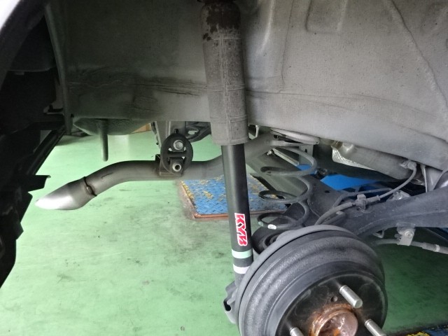 純正でも専用品のKYBショックが装着されていますが、取り外していきます。