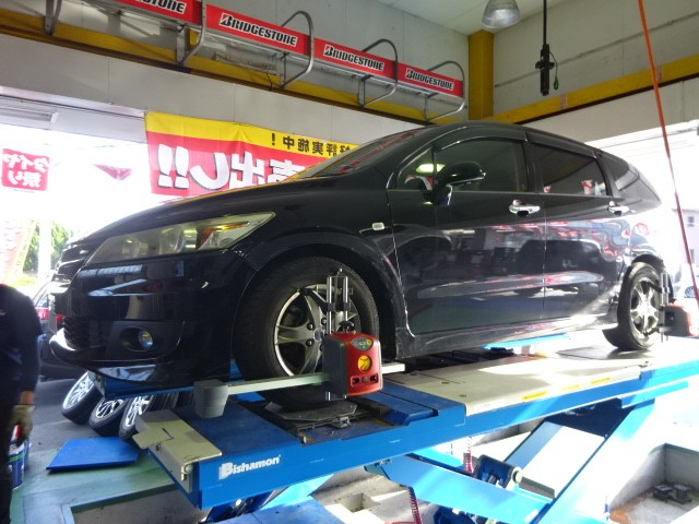 80キロを超えてきたらハンドルブレが凄くなるとの事でアライメントの測定依頼です。
