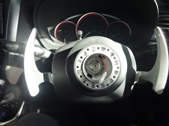早速純正ハンドルを取り外しまして、ハンドルボスを取り付けていきます。