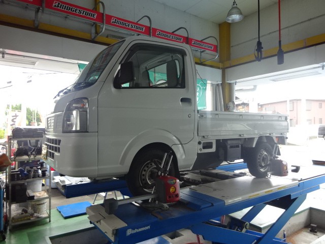 こちらのお車もリフトアップ+タイヤ・ホイールを変更したためアライメントのご依頼です。