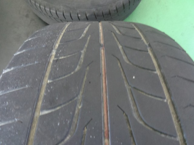ただリアタイヤはひび割れ有り、溝無し、多少の片減り有りで、こちら側のタイヤ交換をご提案!