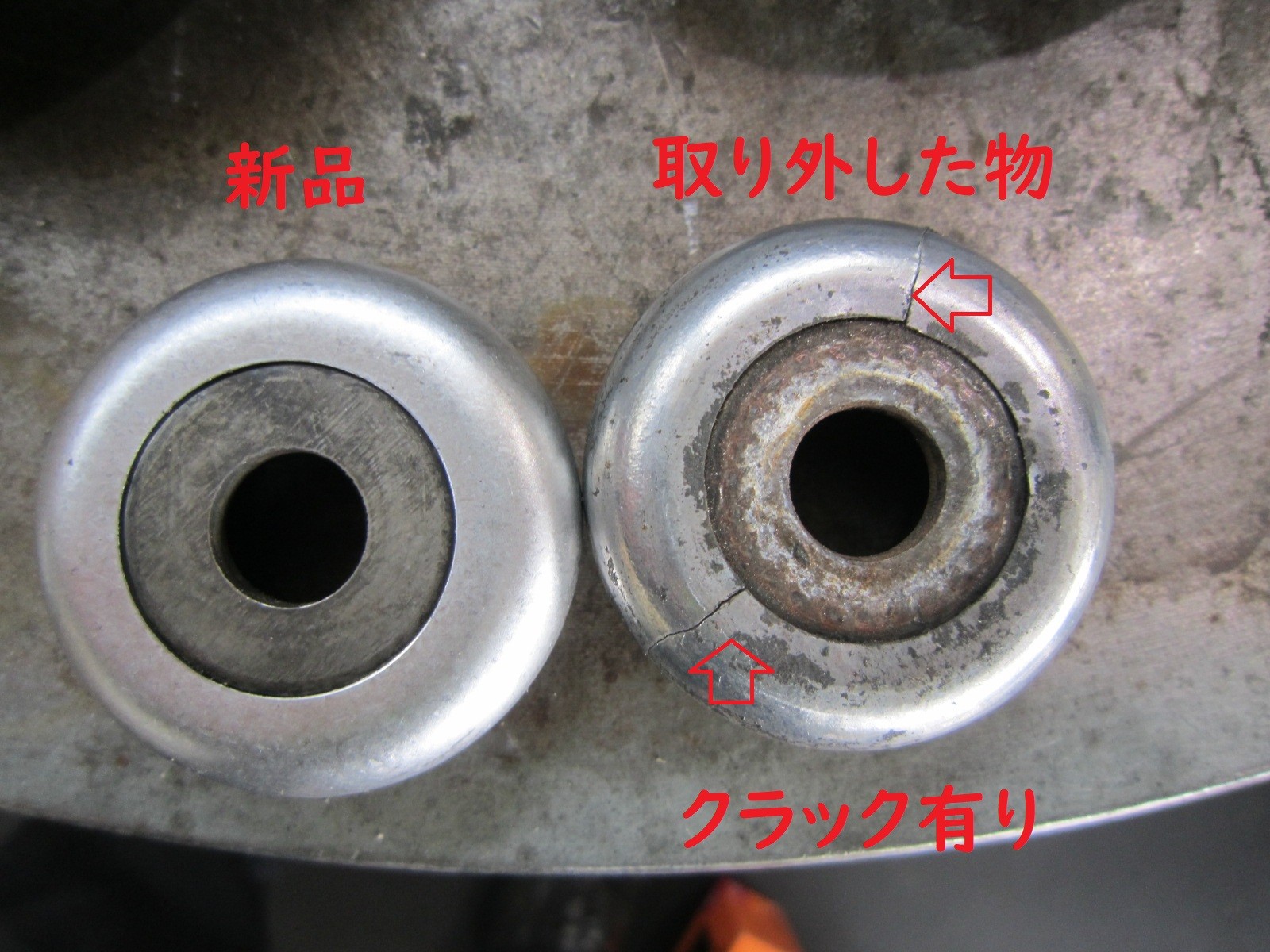 外したベアリングにはクラックが有りました。