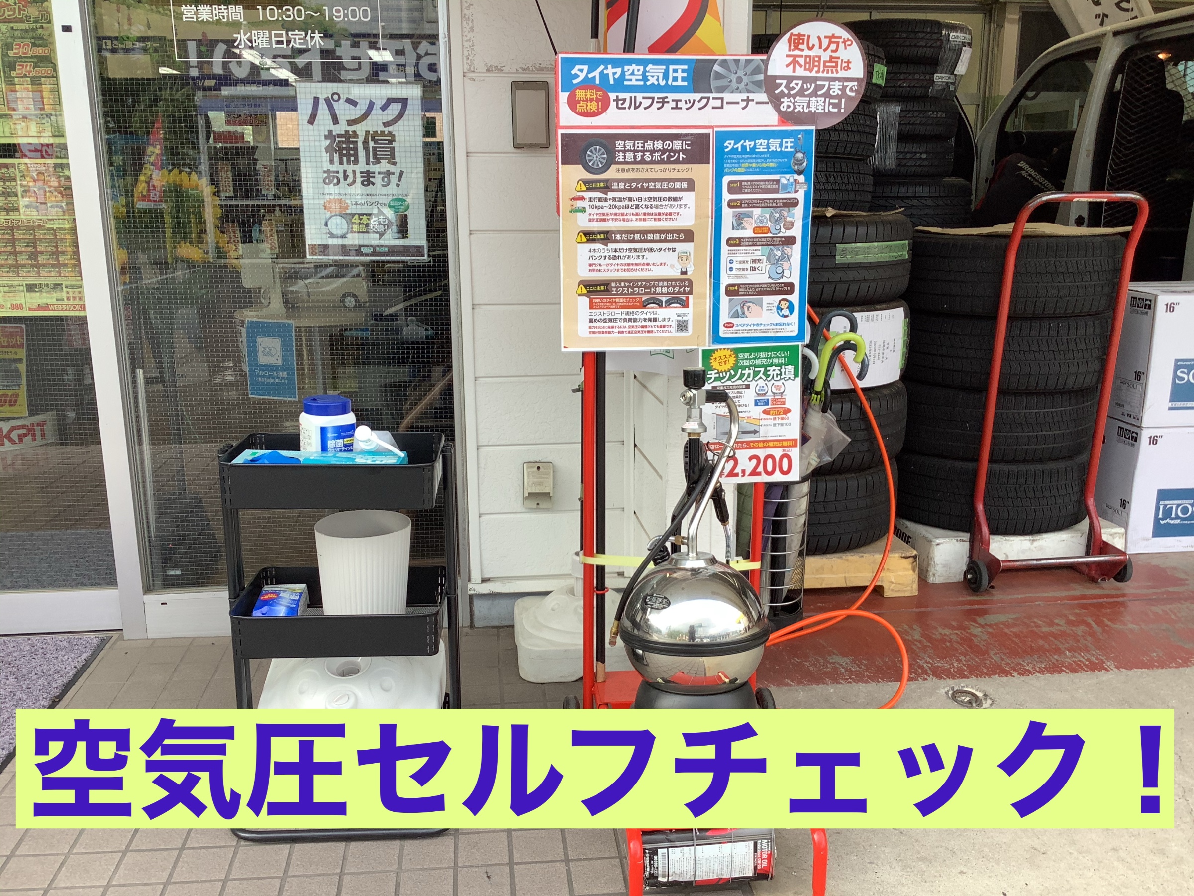 2023年6月26日 ツイート そこで当店では、気軽にエアーチェックができる様 ご準備しております。 店内に一声かけて頂きましたら、使い方をご説明いたします。 不安な方には、スタッフが対応いたします。 お気軽にお声掛けくださいね♪ Prev Next