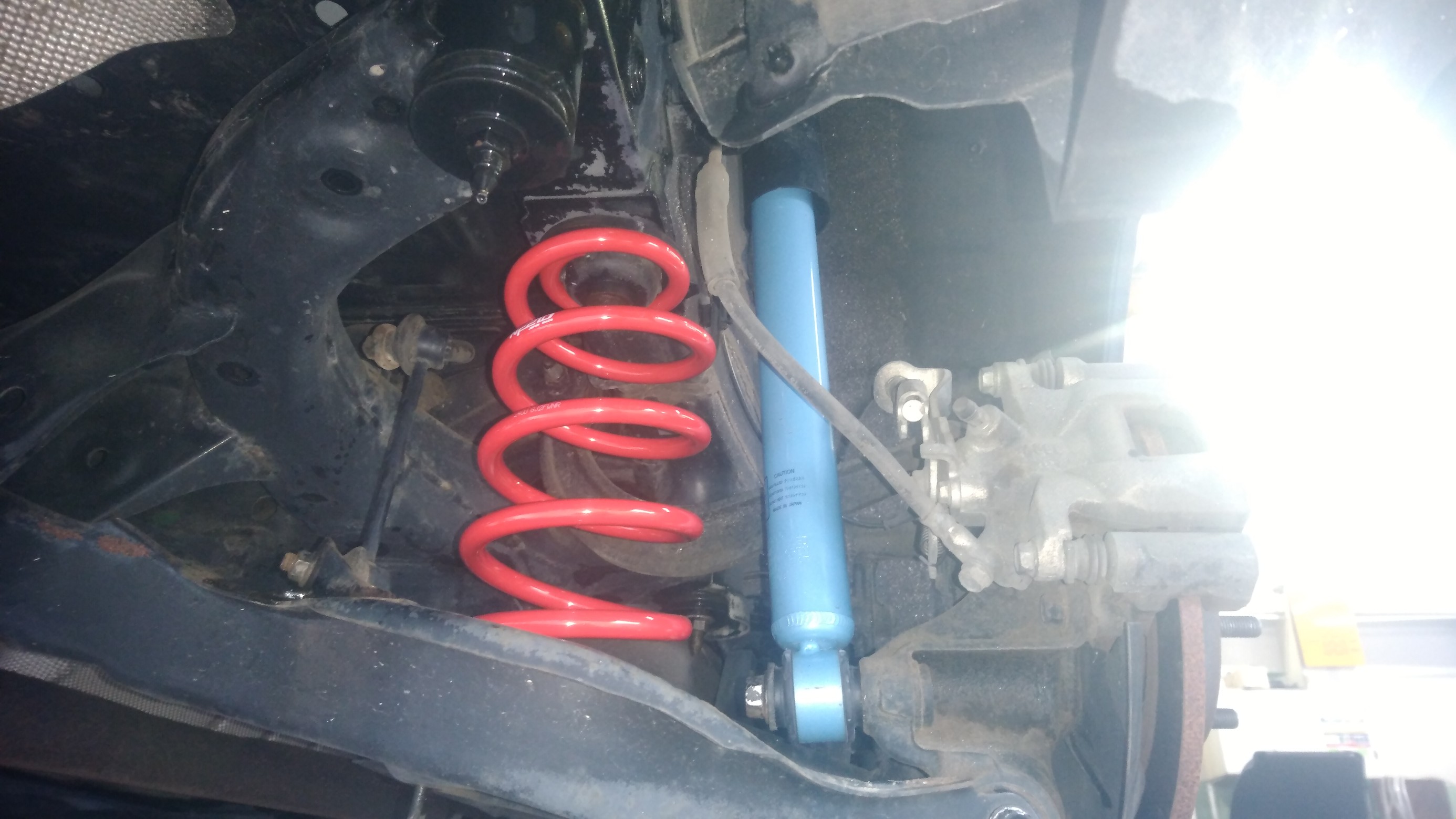 カヤバ ローファースポーツとタナベのスプリングを組み合わせ、車高も少し下がります。