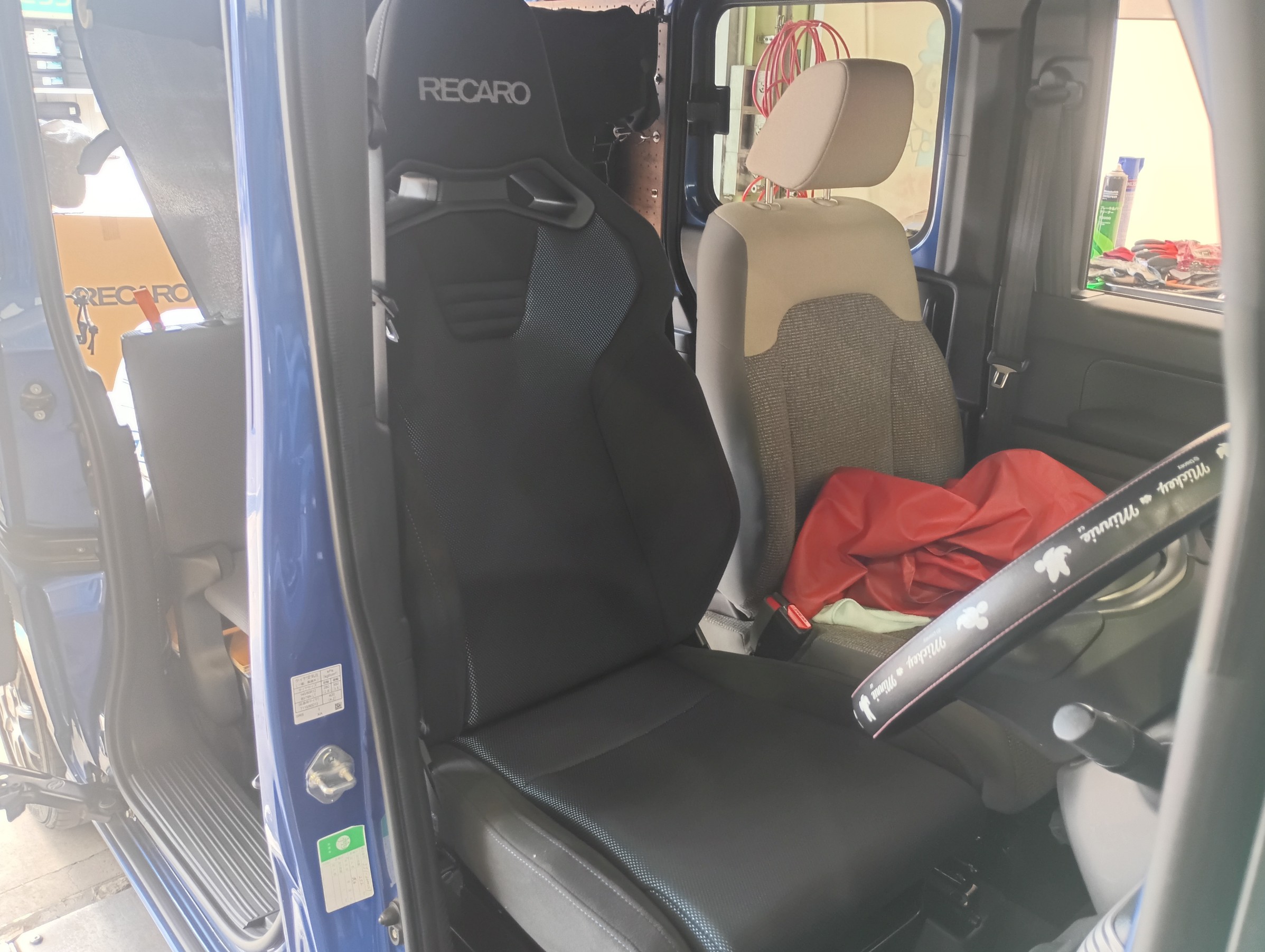 荷物が沢山積めるので長距離走行も多いようで、N-VANへのレカロ装着は多いですね。