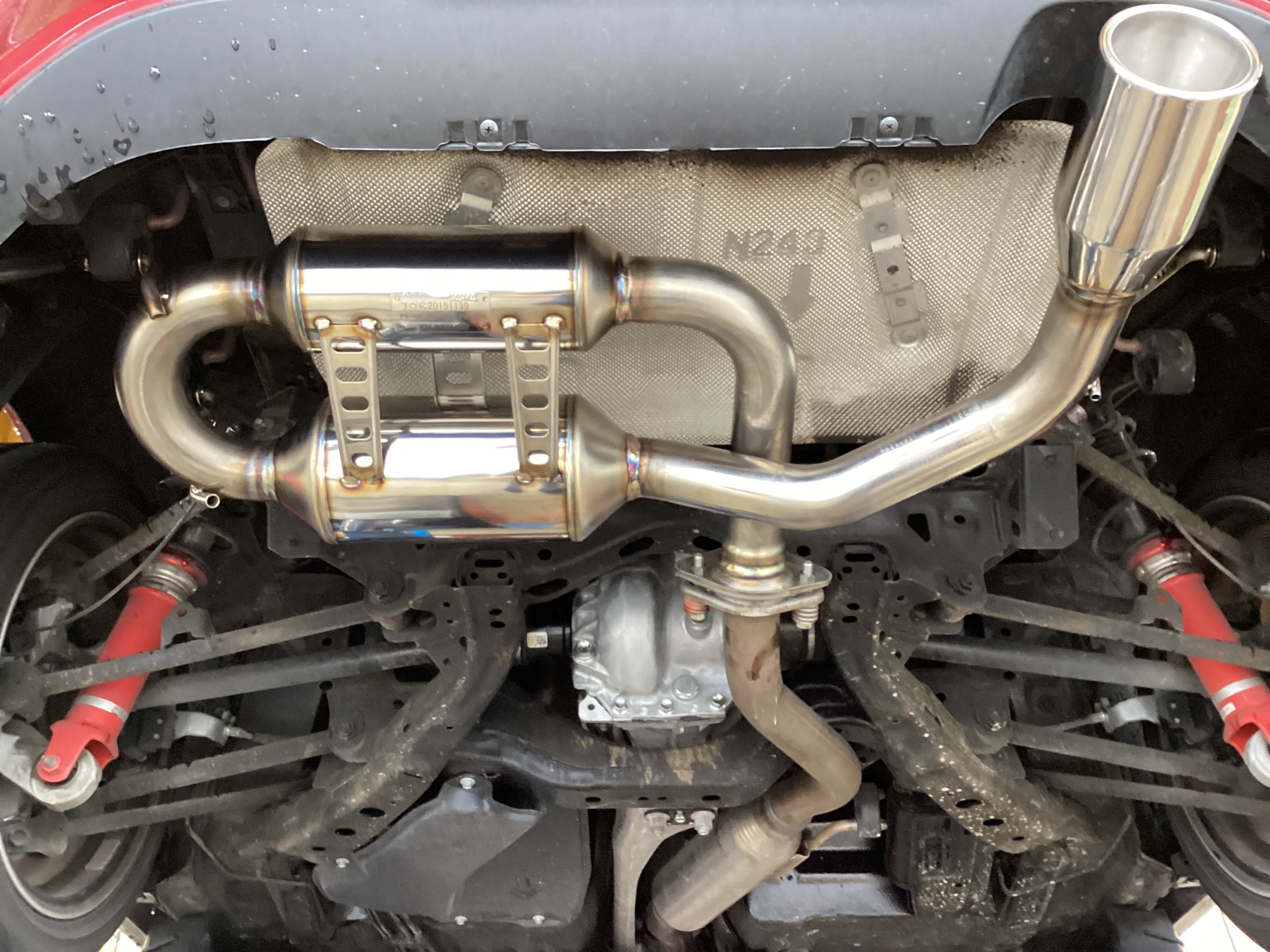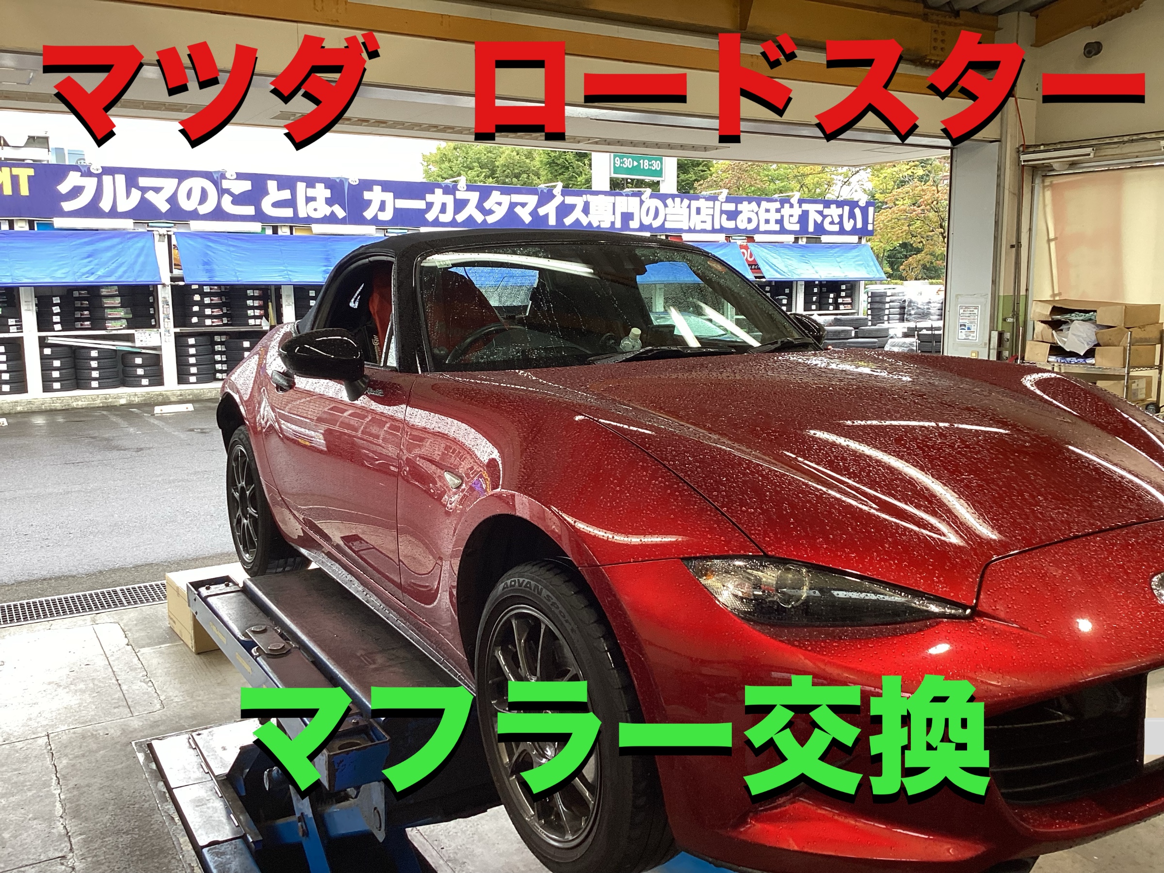 今回はロードスターの軽さをさらに活かすため、より軽いマフラーに交換しました。