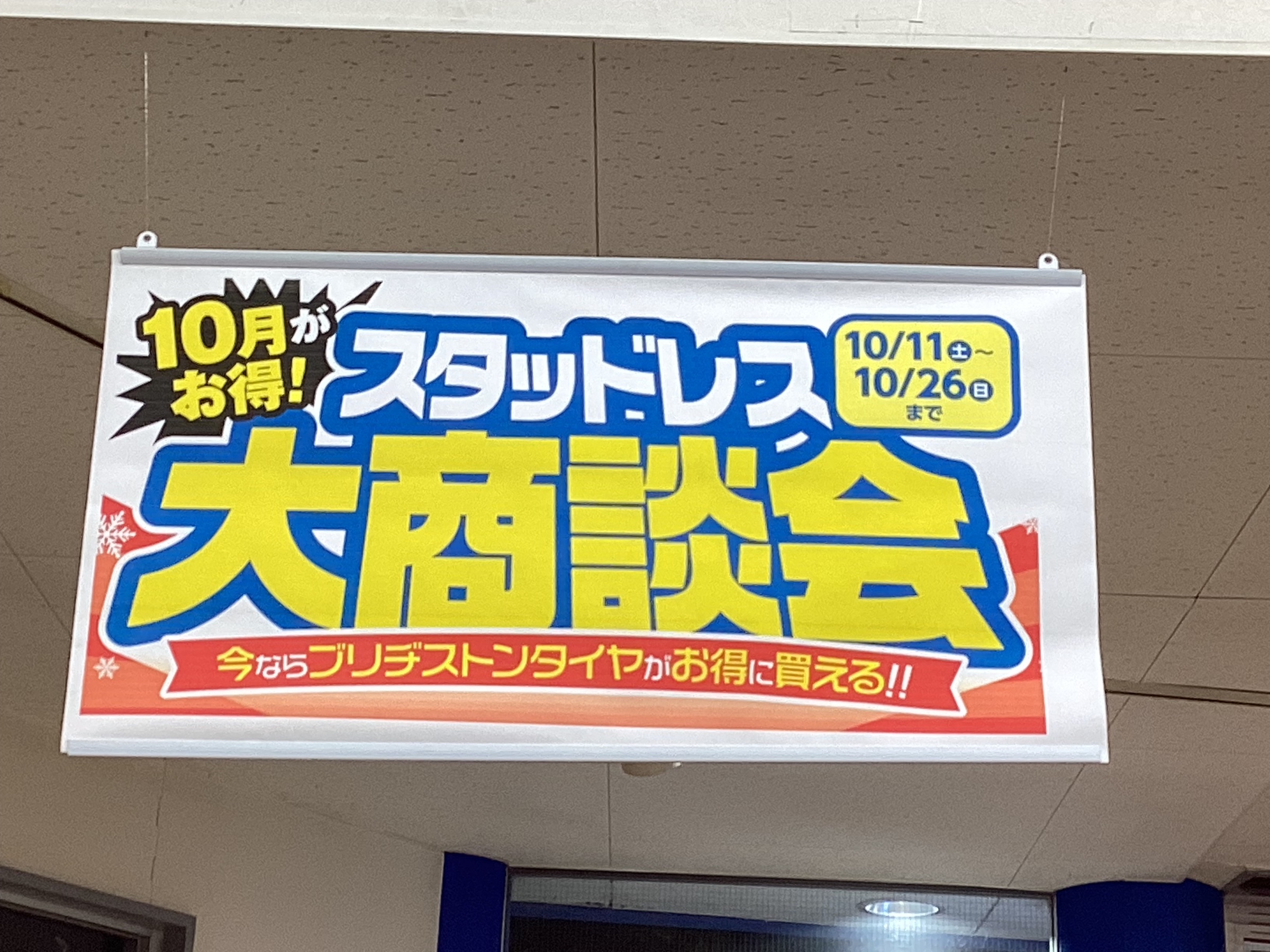 2025年10月18日 ツイート 10月も中旬にきて、めっきり秋めいてきましたね。 先週末から開催中の『大商談会』も中盤に差しかかってきました。 今日も沢山のお客様にお越しいただきまして、ありがとうございます。 感謝感謝です(=^x^=) 今年、冬タイヤを交換ご予定の方 一度、いらしてみてください( ^ω^ ) Prev Next