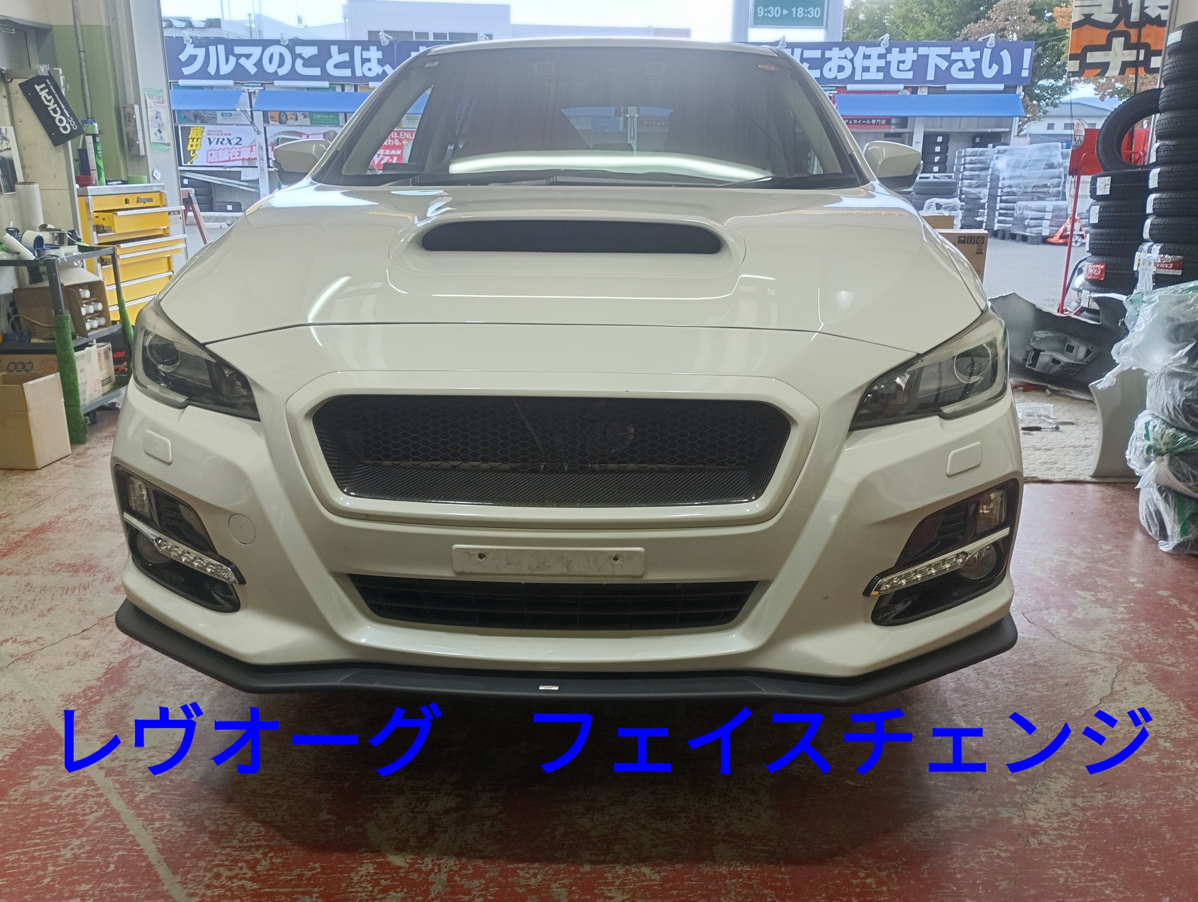 本日はスバル、レヴオーグのフェイスチェンジをしました。バンパー交換です。WRXのバンパーでイメージチェンジです!