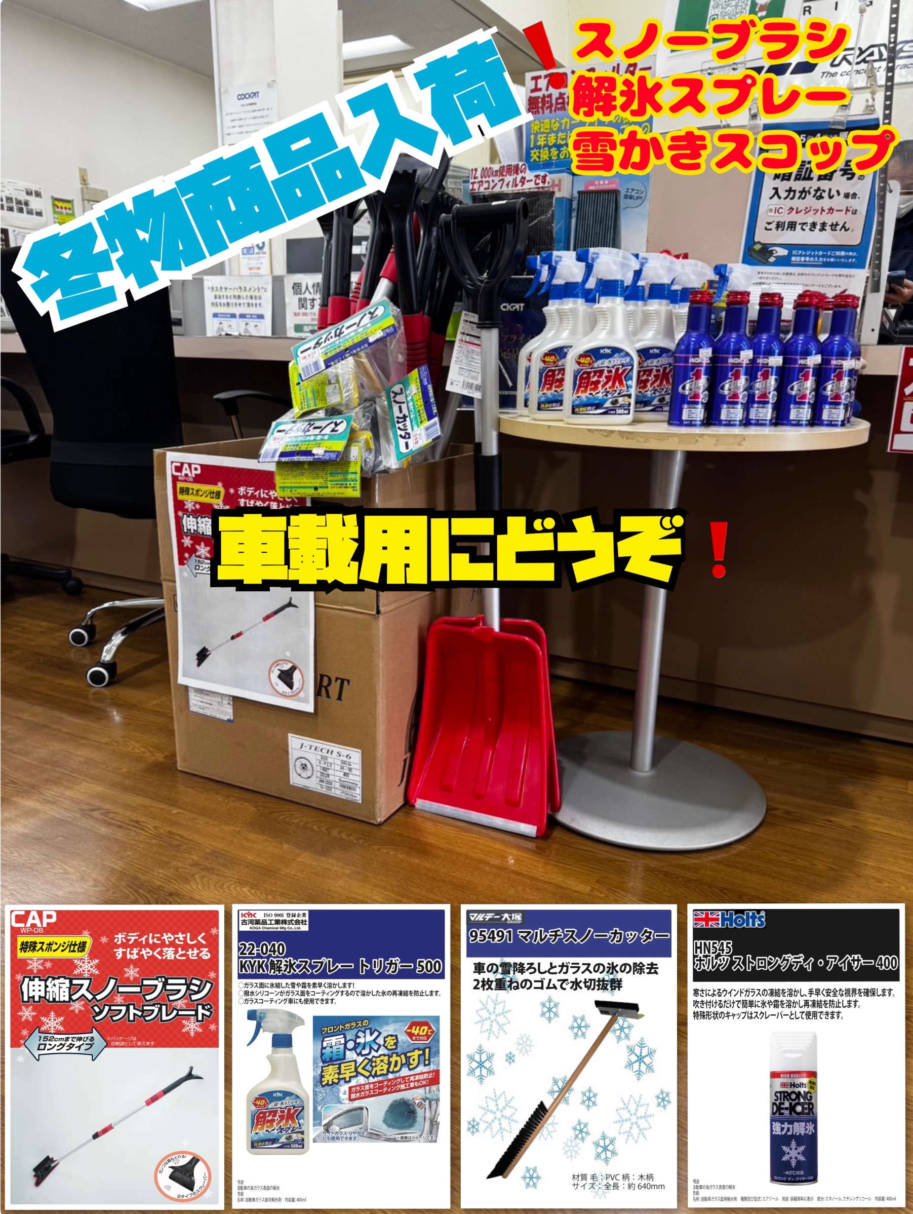 #スノーブラシ#スノーカッター#解氷スプレー#スコップ#コクピット西部