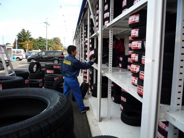 2008年11月4日 ツイート 今まで、ピット内部や店頭を占領していたスタッドレスタイヤをラックに片付けました。けっこうな本数があったので、片付けたスタッフは大変だったのでは・・・。価格のポップをこれから取付けて完成です。皆さん、注文に来て頂けるにのを、お待ちしています。よろしくお願いします。 Prev Next