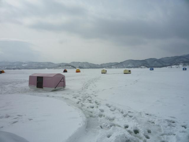 たいへんお待たせ致しました、桧原湖にやっと氷が張りました!