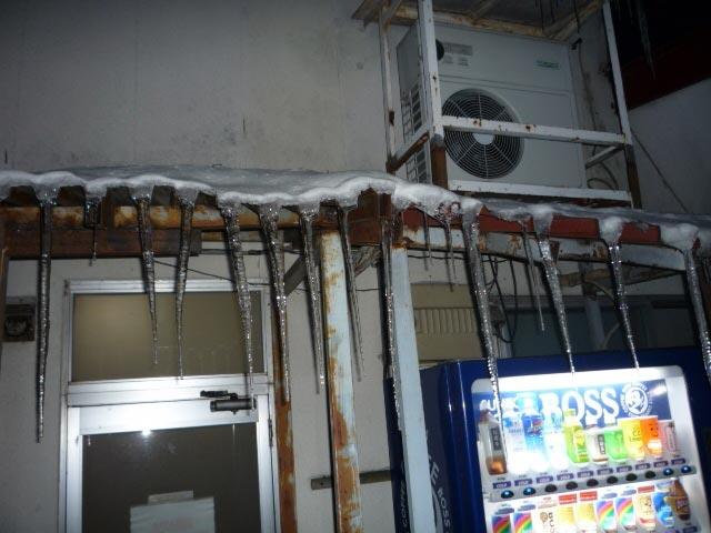 ※画像⑦ 館舟付近は氷が溶けて非常に危険です!!
