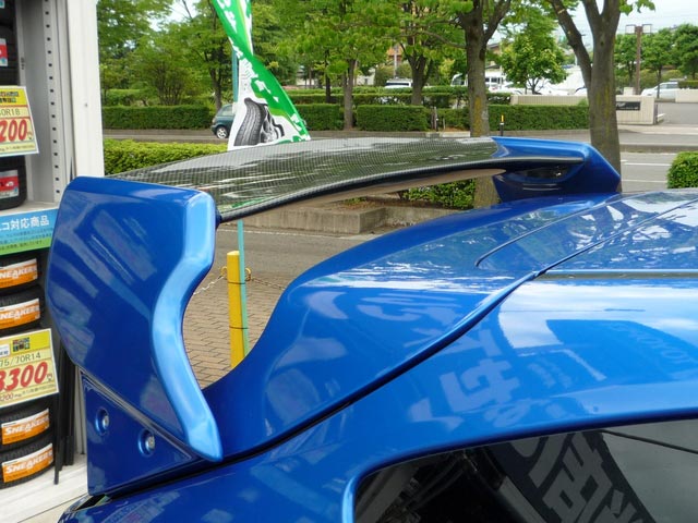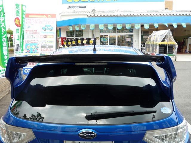 インプレッサのGRB型です。そのままでも十分にカッコイイとは思いますが、今回リアウイングをバリスの物に交換しました。