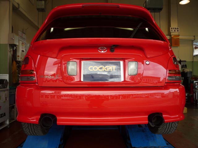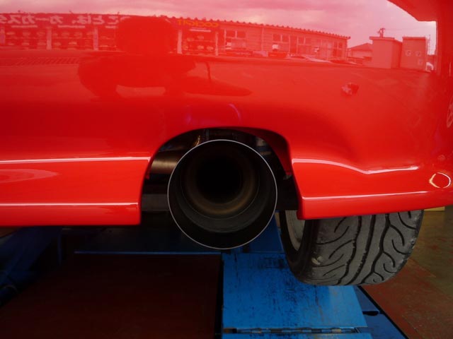 先日のブログにも書きましたが、マフラーをワンオフでチタンで、しかも、左右出しに作った車で、リアのバンパーも加工して、出口をカッコ良く仕上げました。イイでしょ・・。