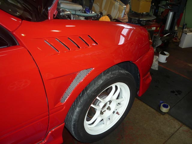 ついでなんで、フロントフェンダーをダクト付きの物に変更し、カーボンボンネットもブラックに塗ってしまいました。当たり前ですが、メチャメチャキレイです。