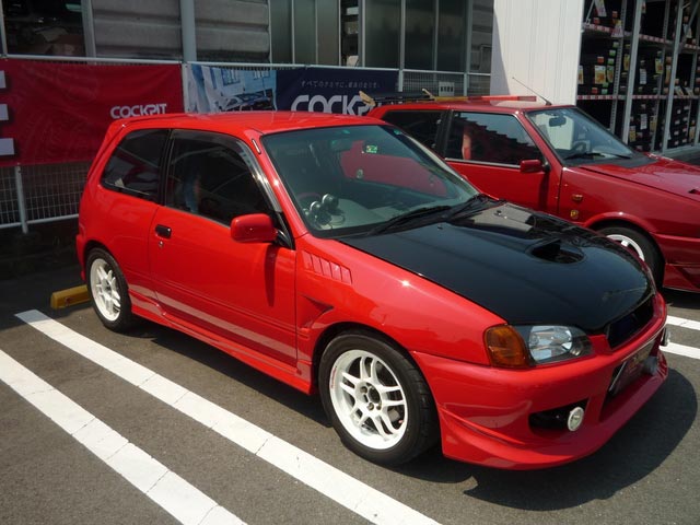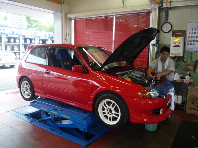 スターレットです。EP91です。最近ではあまり見なくなってしまった車種では有りますが、まだまだ元気です。それを更に元気よくするために、全塗装しちゃいました。