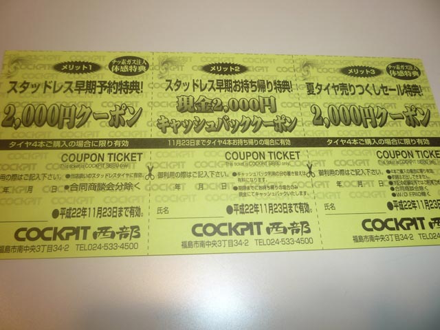 10月から実施しておりますスタッドレスの早期予約特典が11/23日(火)で