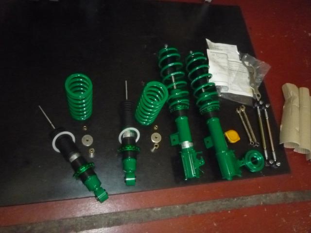 実は今日が納車日でしたが、早速足回りの交換です。商品は、最近人気の有る〔TEIN〕のストリートベイシスで、先月の下旬に注文を頂いていました。ほどよく下がって後はインチアップかな? すでに見積もりは出してありますが・・・。