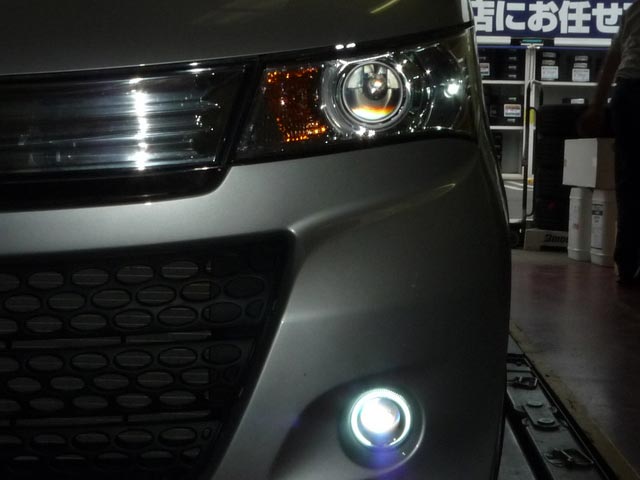 FOGは〔REIZ〕のプロジェクタータイプで、イカリング仕様。車種専用です。無加工で付きます。配線がイカリングの分多いので、それは何処かから取る必要が有りますが、チョッとした手間ですかね。