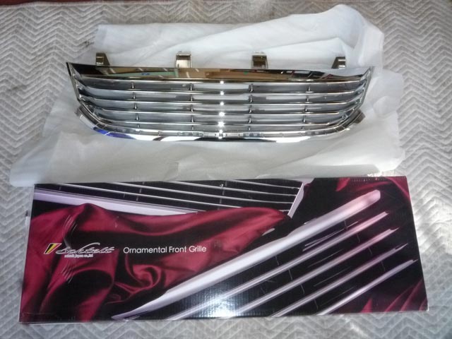 ①フロントグリル交換・・・純正のグリルってあまりカッコ良くないでしょ? センターのHマークもなんかなーってな感じだし・・。そこで、〔シュテルト〕のマークレスグリルに交換しました。イメージ変わったよね。