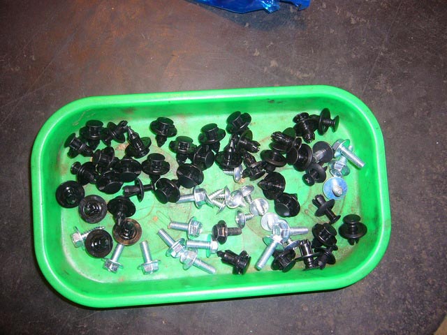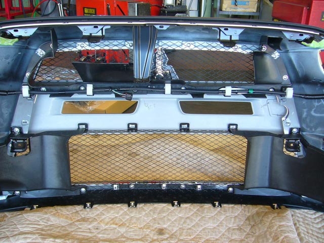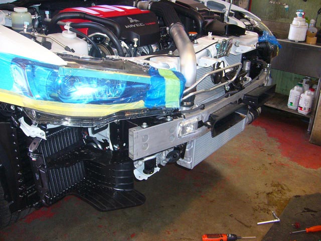 そして、グリル廻りのモール部ですが、画像でも分かる通り、クリップとビスが山の様に付いていて(画像が全部では有りません)、ピットスタッフも渋い顔で作業を進めていました。お疲れ様でした。